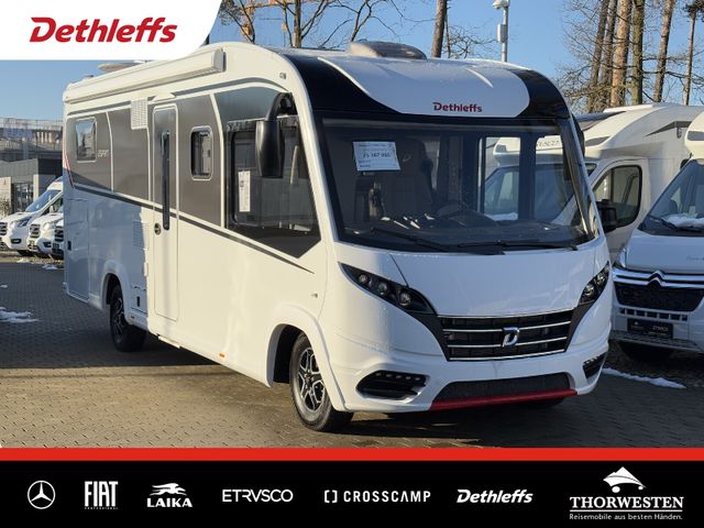 Außendesign GT Advance (Heckleuchtenträger mit schwarzem Diffusor, lackierung I-Front teilweise schwarz, Kühlergrill mit Chromkeder, Skidplate "rot"), Hoher charakteristischer Dethleffs Exklusiv Heckleuchtenträger mit ShapeLine LED Rückleuchten, in Heckspoiler integrierter 3. Bremsleuchte und eingezogener Heckwand)