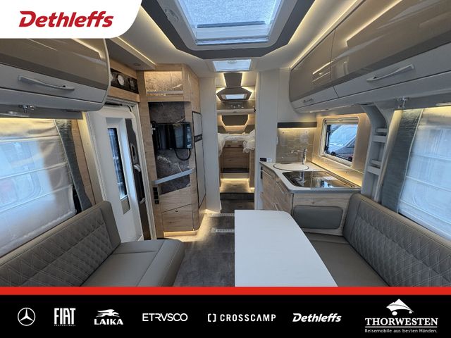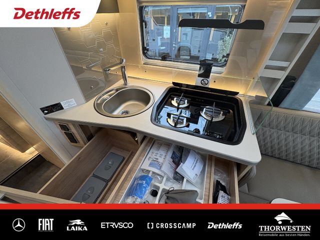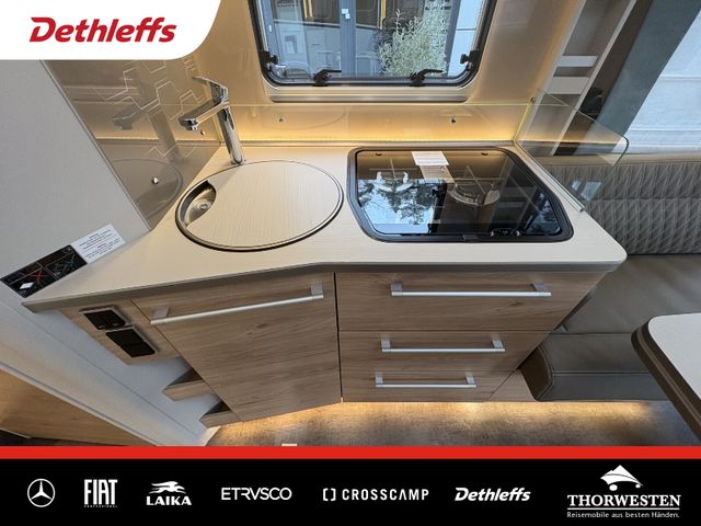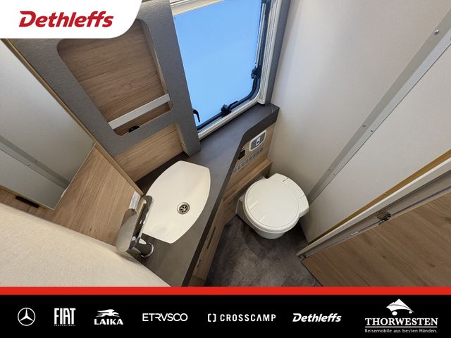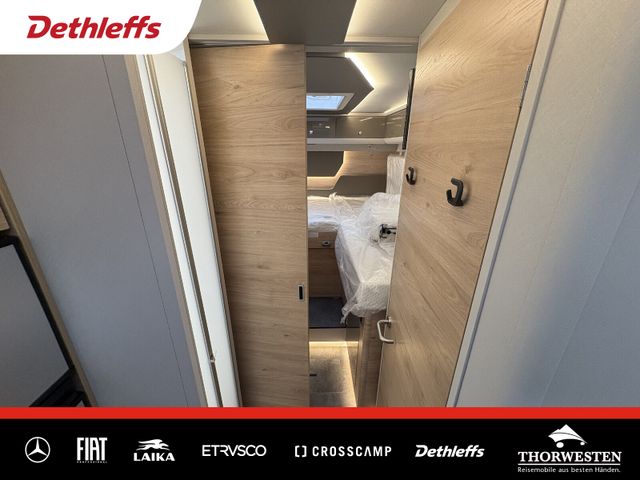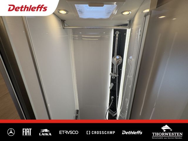 Light Moments: Beleuchteter Einstiegsgriff, Indirekte Beleuchtung im Badezimmer mit beleuchteter Duschkonsole, Sockelbeleuchtung im gesamten Fahrzeug, Durchgehender Baldachin mit indirekter Beleuchtung, Küchenrückwand beleuchtet, Indirekte dimmbare Wandflächen-Ambientebeleuchtung