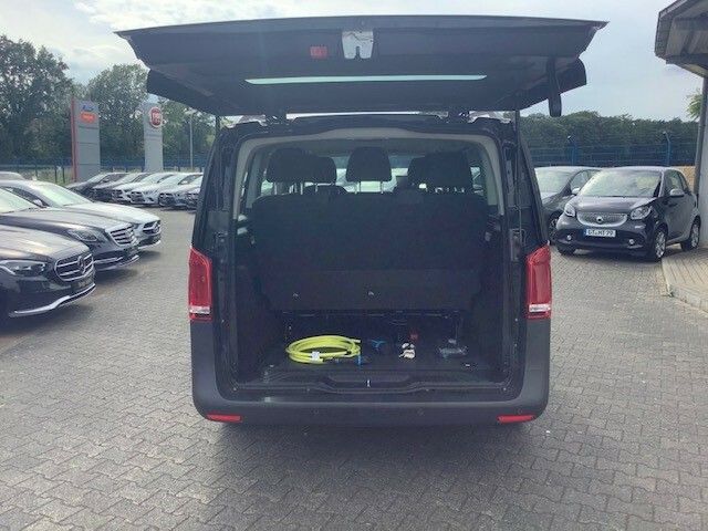 Ausstattungslinien und -Pakete FP4 Chrom Interieur-Paket JP2 Fahrassistenz-Paket FK2 Kühlergrill verchromt XZ1 Modellgeneration 1 EZ5 Park-Paket Elektro-/Hybrid-Technik J2A Akustischer Umfeldschutz Exterieur F68 Außenspiegel heizbar und elektrisch verstellbar D12 Dachreling V36 Dachverkleidung RM4 Komfortbereifung H20 Wärmedämmendes Glas rundum Interieur U71 3er - Sitzbank 1. Reihe mit klappbarem äußeren Sitz F66 Abschließbares Handschuhfach U63 Bestuhlung Fahrgastraum 3er Sitzbank 2. Reihe SB2 Komfort-Beifahrersitz SB1 Komfort Fahrersitz H15 Sitzheizung für Beifahrer H16 Sitzheizung für Fahrer Multimedia/Navigation/Internet/Konnektivität E1D Digitales Radio (DAB) JK3 Kombiinstrument (Pixel-Matrix-Display) Komfort/Umwelt/Fahrwerk E07 Berganfahrhilfe LA2 Fahrlichtassistent W65 Heckklappe CL3 Lederlenkrad LG2 LED Intelligent Light System CL4 Multifunktionslenkrad mit Reiserechner EZ8 Parktronic JF1 Regensensor FR8 Rückfahrkamera JW5 Spurhalteassistent MS1 Tempomat H00 Warmluftkanal zum Fahrgastraum HZ0 Zuheizer elektrisch Licht/Sicherheit/Assistenzsysteme LE1 Adaptives Bremslicht BA3 Aktiver Brems-Assistent JW8 Attention Assist SA6 Beifahrerairbag C70 Fußgängerschutz EY5 Mercedes-Benz Notrufsystem SH2 Thorax-Pelvis-Sidebag Beifahrer SH1 Thorax-Pelvis-Sidebag Fahrer JA7 Totwinkel-Assistent SH9 Windowbags für Fahrer und Beifahrer Zustand/Papiere IL5 Linkslenker Weiteres EL9 2-Wege-Lautsprecher vorn und hinten E7L AC Laden 11 kW / DC Laden 110 kW T14 Aktiver Feststeller Schiebetür EA4 Audio 40 CF9 Basisfahrwerk Plus IB6 Baureihe C447 Vito/V-Klasse EY2 Digitales Extra: Vorrüstung für Live Traffic Information ME4 Elektromotor 150 kW / Batterie 90 kWh (nutzbar) W29 Fenster fest hinten W78 Fenster in Heckklappe/Hecktür mit Wisch- und Waschanlage W16 Fenster vorn links, fest in Seitenwand/Schiebetür W17 Fenster vorn rechts, fest in Seitenwand/Schiebetür X16 Gewichtsvariante 3.500 kg J55 Gurtwarneinrichtung für Beifahrer HH9 halbautomatisch geregelt Klimaanlage TEMPMATIC T75 Haltegriffe für Einstieg Fahrer und Beifahrer T74 Haltegriff für Einstieg VH1 Haltegriff im Fond BH1 HOLD-Funktion LD9 Innenraumleuchte(n) im Fond F61 Innenspiegel V23 Innenverkleidung gehobene Ausführung T70 Kindersicherung an Türen im Fahrgastraum HI1 Klimazone 1 (kalt/komfort) ZM4 Kombifahrzeug JH3 Kommunikationsmodul (LTE) für digitale Dienste VU9 Kunstleder schwarz V41 Kunststoffboden TPO im Fahrgastraum RK8 Leichtmetallräder 7 J x 17, 20-Speichen Design CL1 Lenkrad in Neigung und Höhe verstellbar XO9 Mercedes-Benz MobiloVan mit DSB und GgD IL6 Metallic-Lack XM0 Modellpflege FY7 Multi-Tasten Funkfernbedienung EY6 Pannenmanagement IN2 Radstand 3200 mm, Überhang lang RY2 Reifendrucküberwachung an VA u. HA, drahtlos XU1 Schilder / Druckschriften deutsch LG4 Schluss-, Brems- und Blinklicht in LED-Technik UR3 Sitzbef. Fond m.Schnellverriegelung 2 Sitzreihen JI6 Startlaufstrecke Wartungsintervall 40.000 km ZQ8 Tourer PRO LC8 Umfeldbeleuchtung Heckklappe ZC5 Vertriebskennzeichen 0 ED4 Vliesbatterie 12 V 92 Ah EW8 Vorrüstung für Remote und Navigation Services JA1 Warnlampe für Wischwasserfüllstand Z42 Zulassung als PKW X30 Zulassungsbescheinigung, Teil II MK9 Geschwindigkeitsbegrenzung 160 km/h