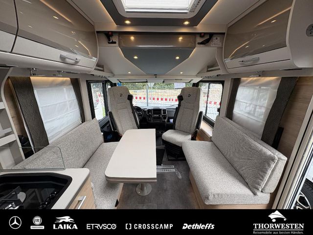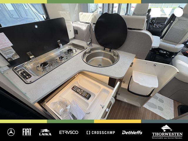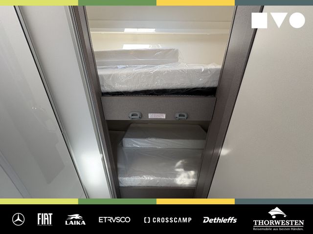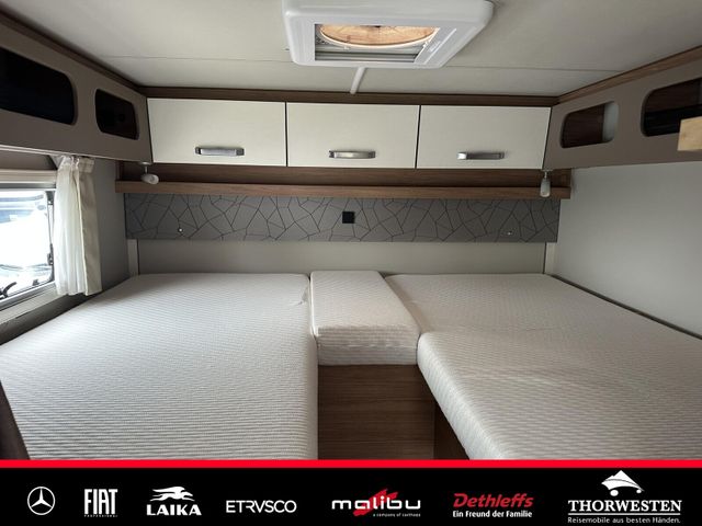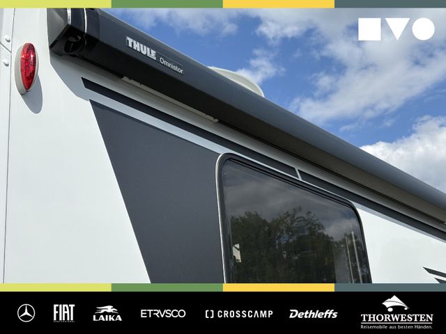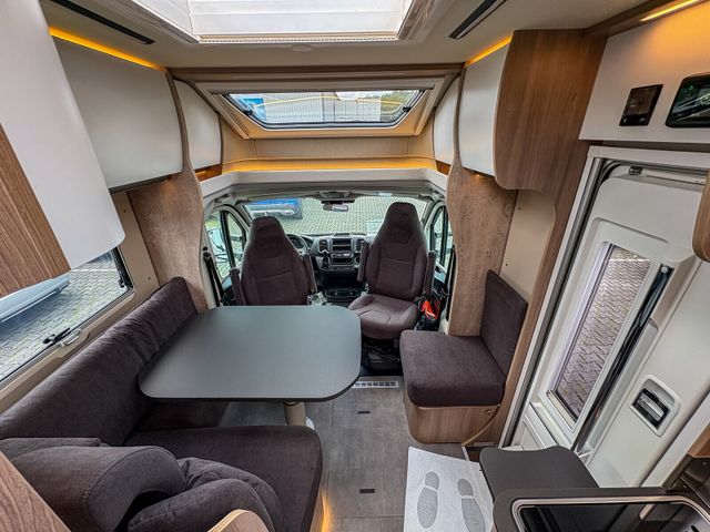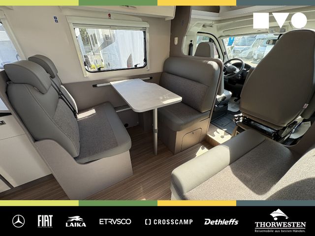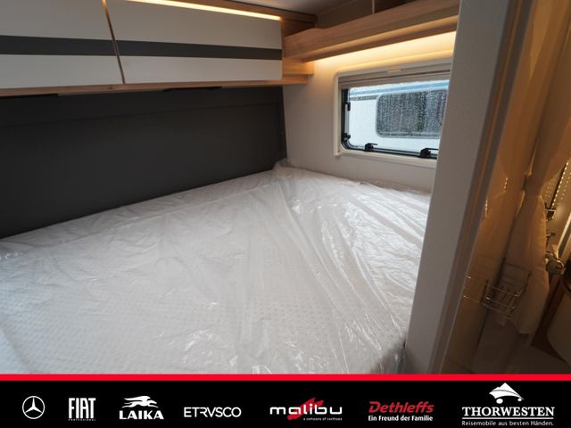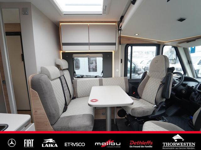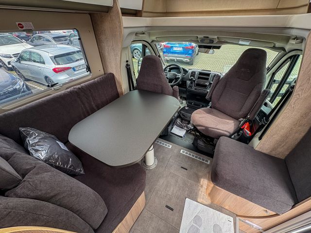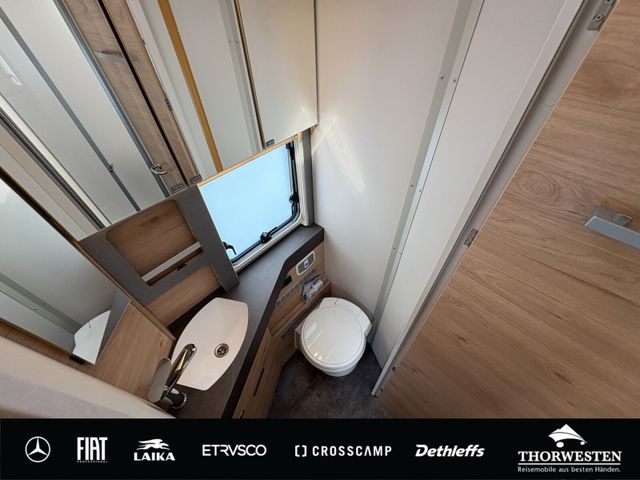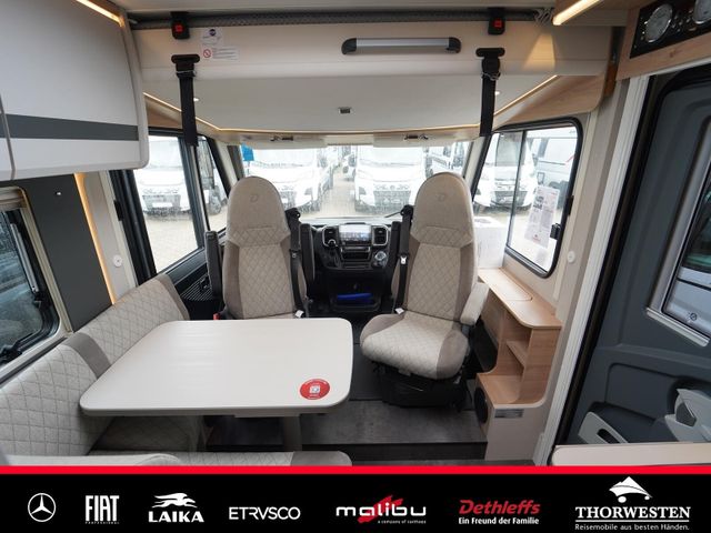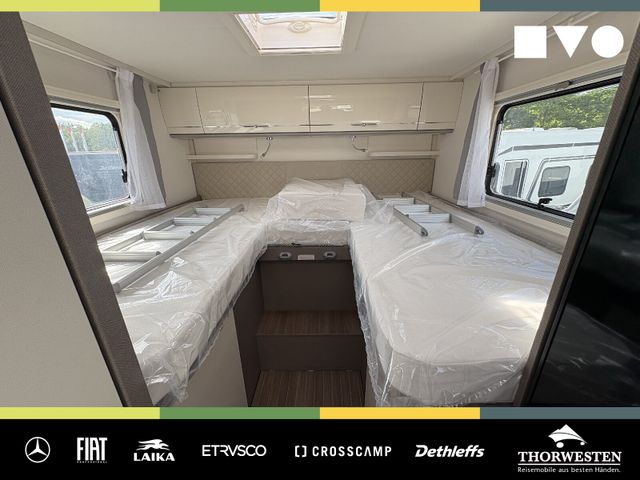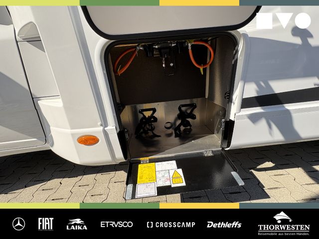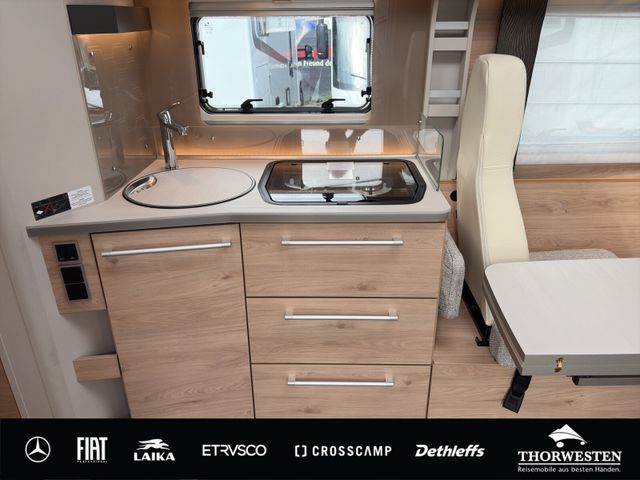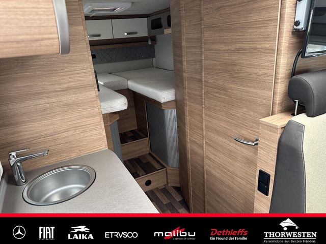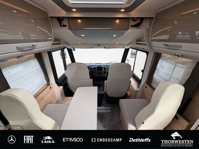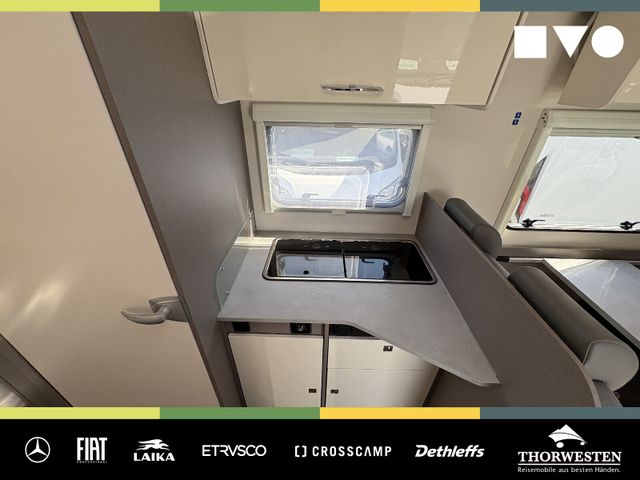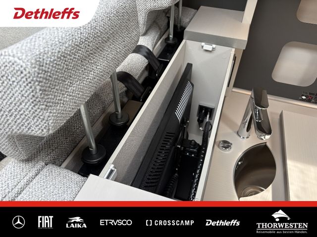 Travel-Paket (Vorbereitung für Radiosystem inkl. Soundpaket im Fahrerhaus, Radioantenne DAB+ auf dem Dach montiert, Panorama-Dachhaube 75x105 cm im Wohnraum, Light Moments: Indirekte Ambientebeleuchtung über den Dachstauschränken, Stützen (2 Stk.) für Anbau hinten, Elektrischer Frontscheiben-Rollo, Automatische Gasflaschenumschaltung inkl. Crash Sensor, EisEx und Gasfilter, Dunstabzugshaube (Abluft) mit Zugluft-Stopper, Integrierte Einlinsen Rückfahrkamera, Zentralverriegelung für Fahrerhaus-, Wohnraumtüre und Garagentüren)