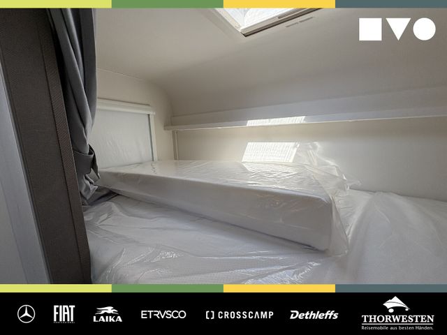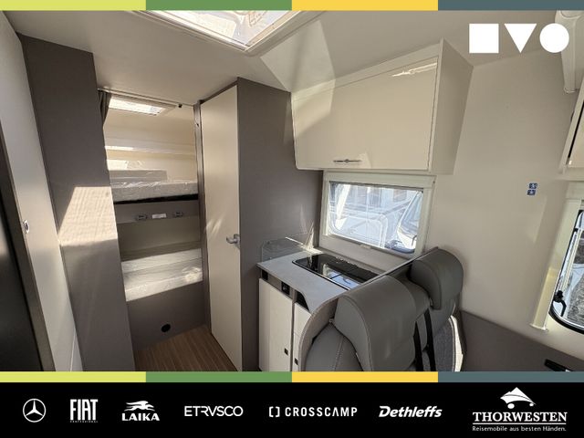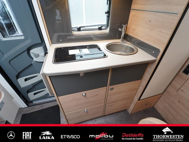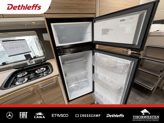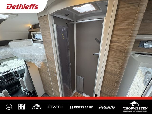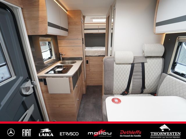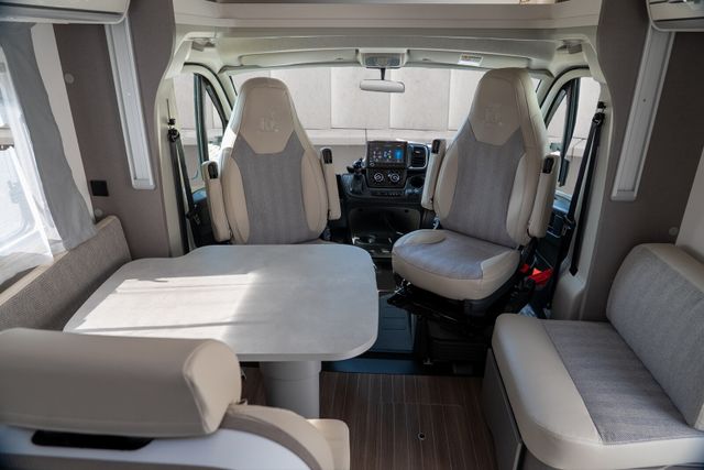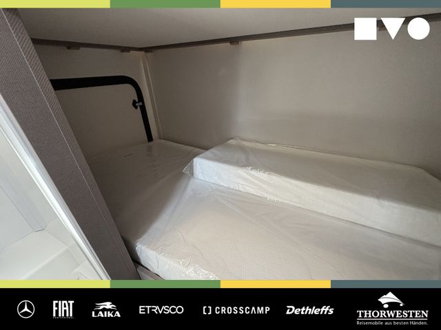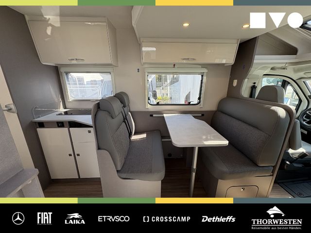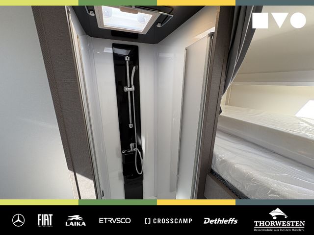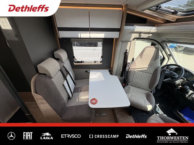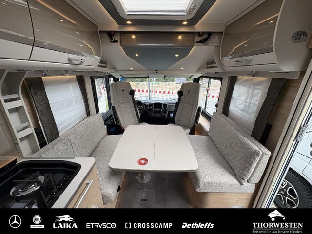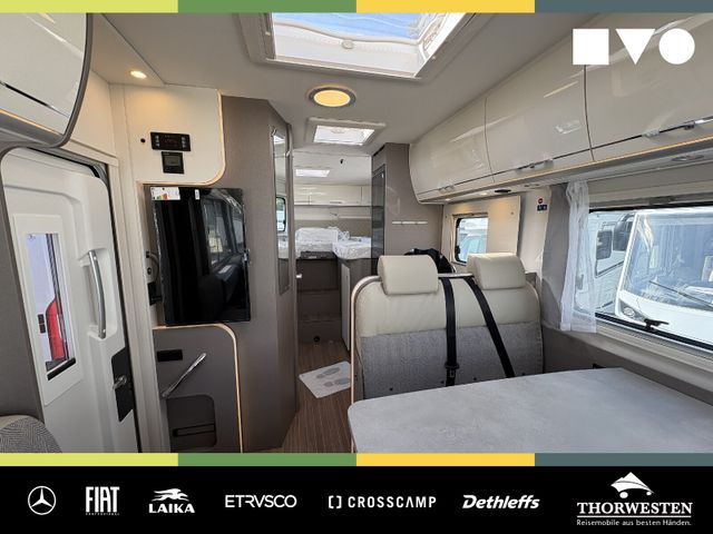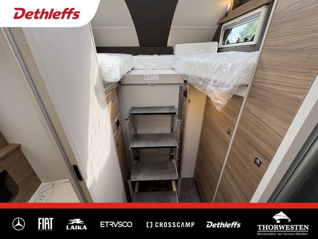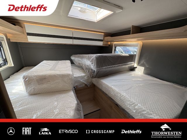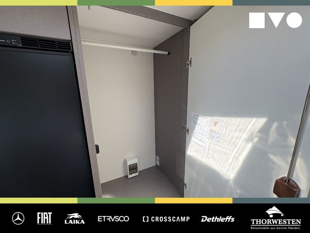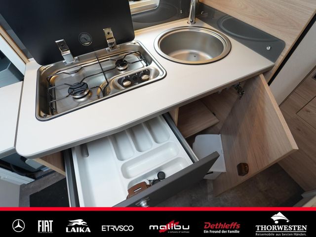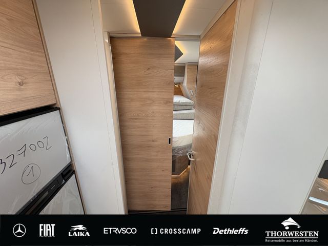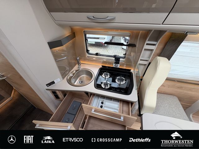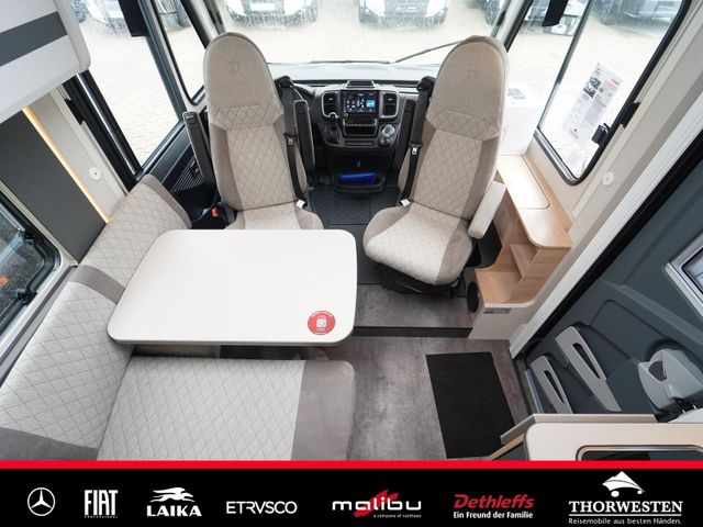 Travel-Paket (Vorbereitung für Radiosystem inkl. Soundpaket im Fahrerhaus, Radioantenne DAB+ auf dem Dach montiert, Panorama-Dachhaube 75x105 cm im Wohnraum, Light Moments: Indirekte Ambientebeleuchtung über den Dachstauschränken, Stützen (2 Stk.) für Anbau hinten, Elektrischer Frontscheiben-Rollo, Automatische Gasflaschenumschaltung inkl. Crash Sensor, EisEx und Gasfilter, Dunstabzugshaube (Abluft) mit Zugluft-Stopper, Integrierte Einlinsen Rückfahrkamera, Zentralverriegelung für Fahrerhaus-, Wohnraumtüre und Garagentüren)