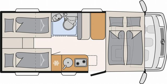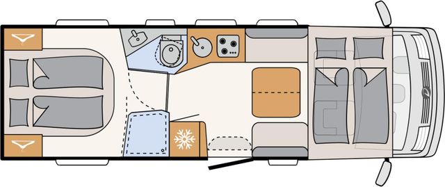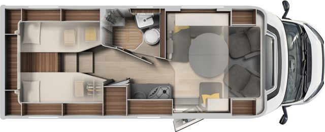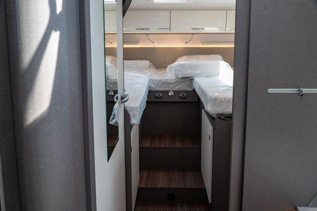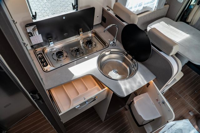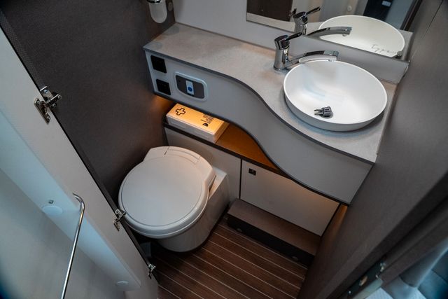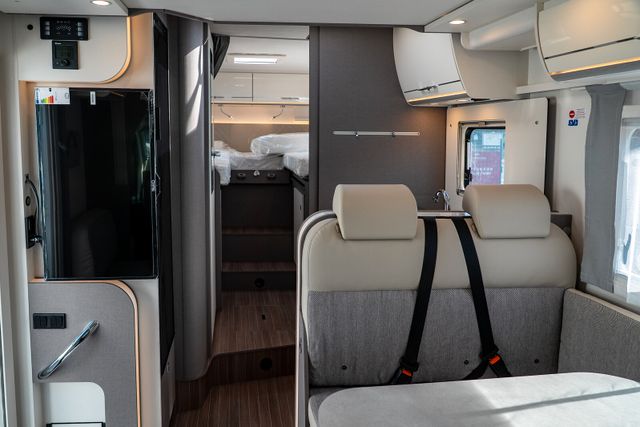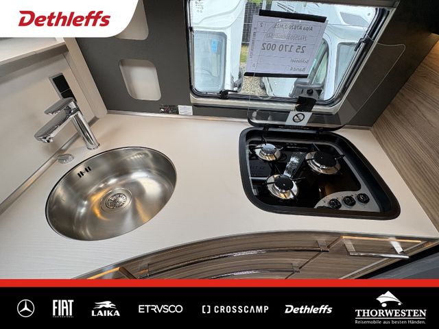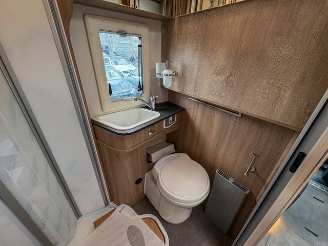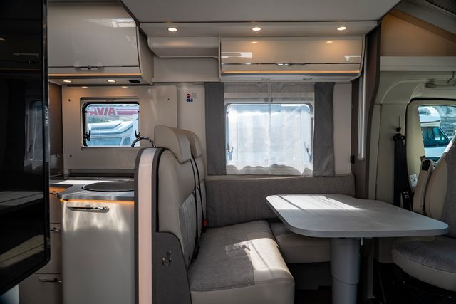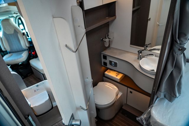 7 Meter Wohnmobil mit praktischen Schwenkbad, Hubbett über dem Fahrerhaus, Isofix uvm.