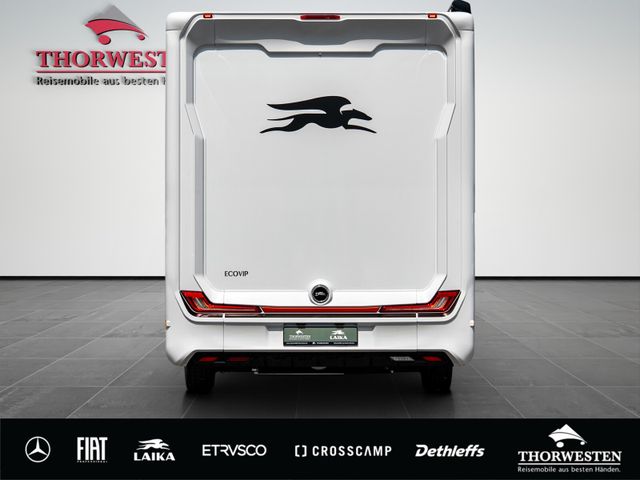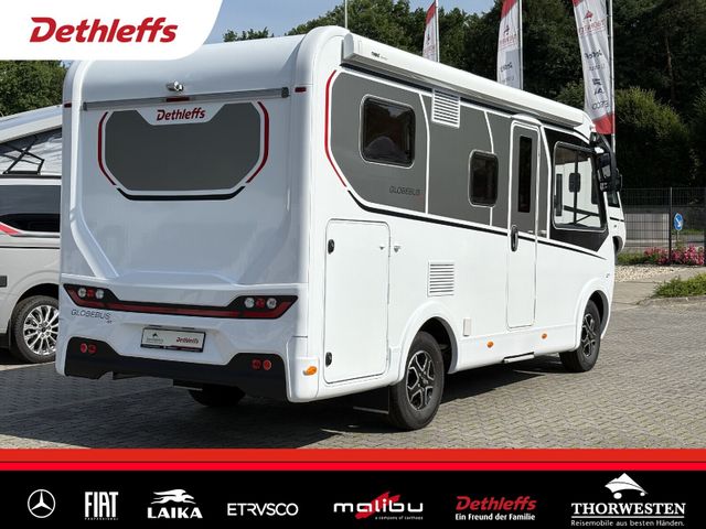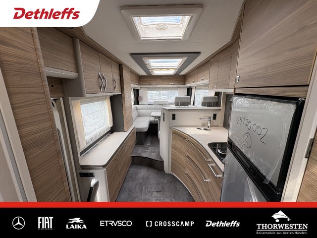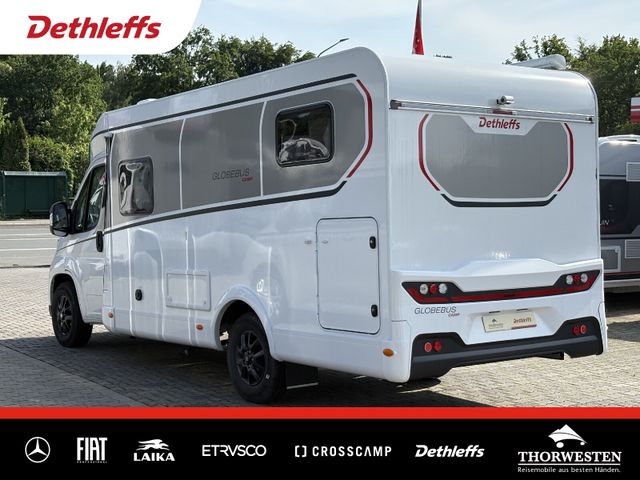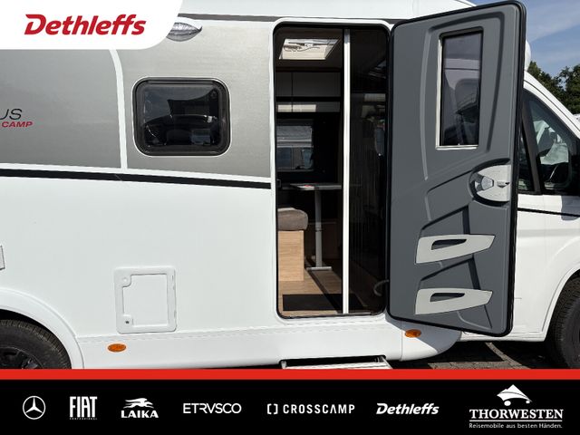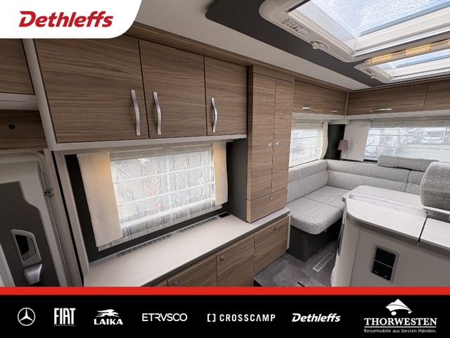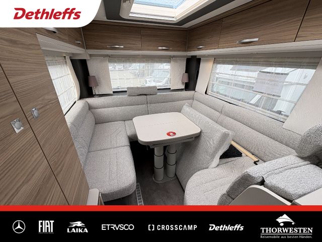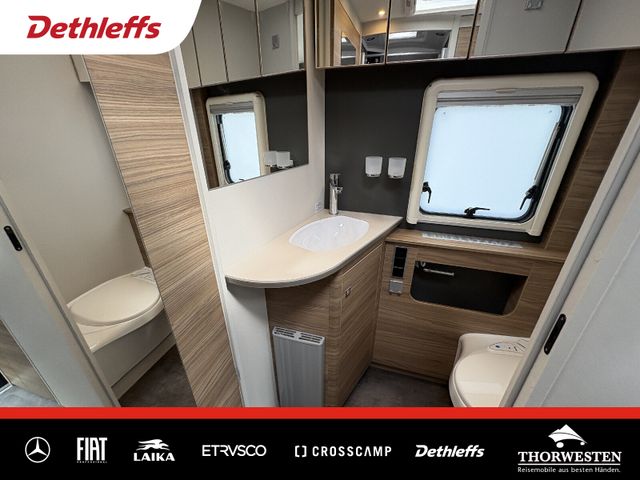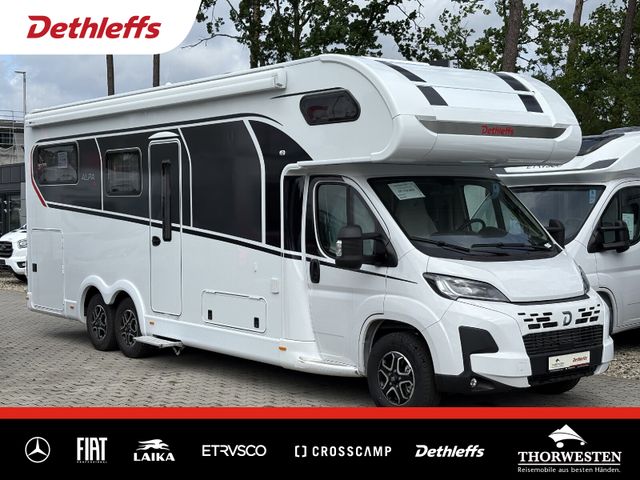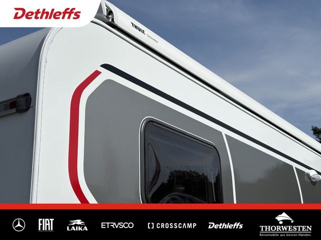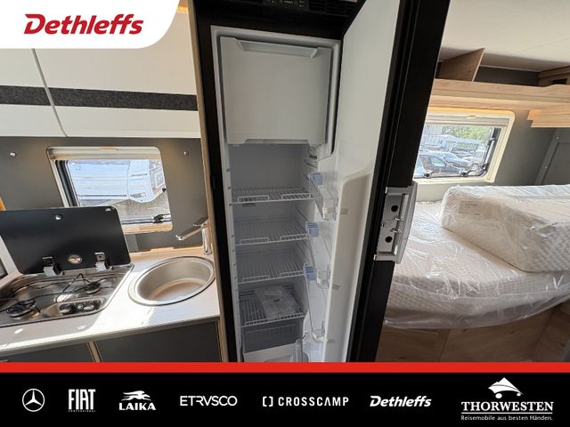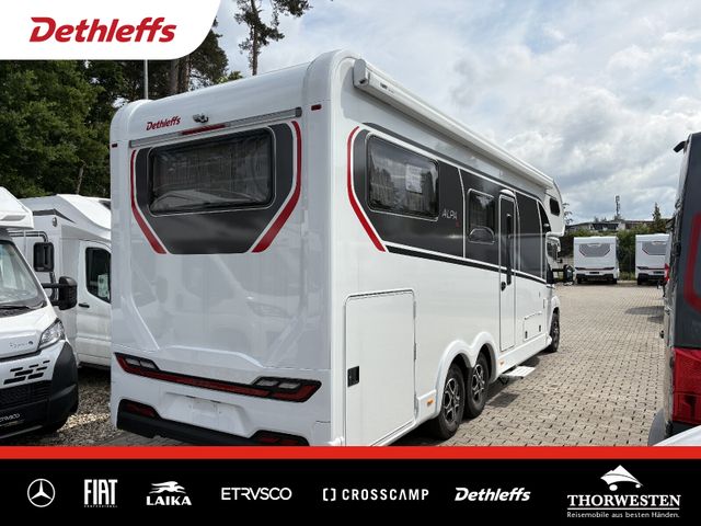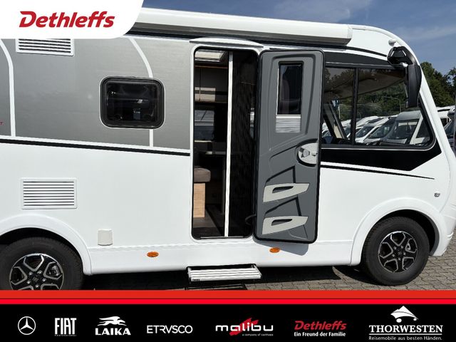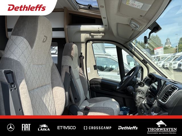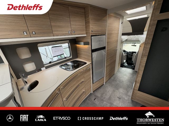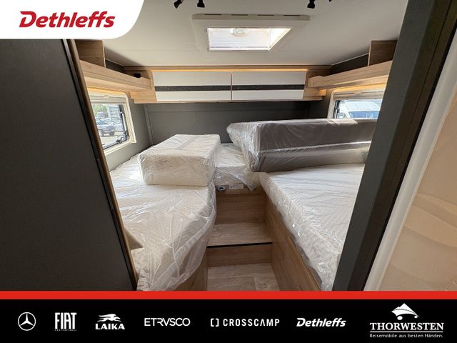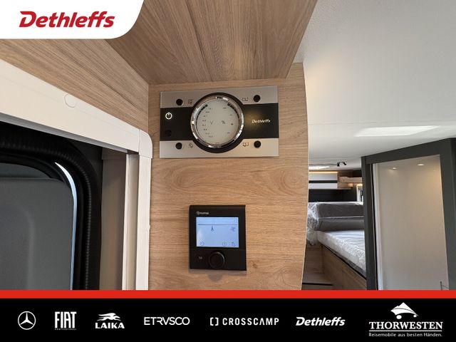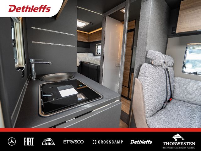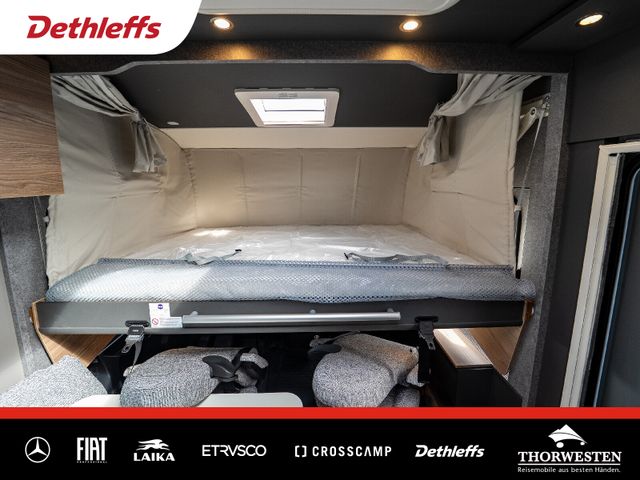Esprit GT Paket (LED-Abblendlicht, Sonnenblenden seitlich, als Rollo für Fahrer und Beifahrer, Panorama-Dachhaube 70 x 50 cm im Schlafraum, Innendesign GT inkl. erweiterter Küchenrückwand, Außendesign GT Advance (Heckleuchtenträger mit schwarzem Diffusor, lackierung I-Front teilweise schwarz, Kühlergrill mit Chromkeder, Skidplate "rot"), Hoher charakteristischer Dethleffs Exklusiv Heckleuchtenträger mit ShapeLine LED Rückleuchten, in Heckspoiler integrierter 3. Bremsleuchte und eingezogener Heckwand)