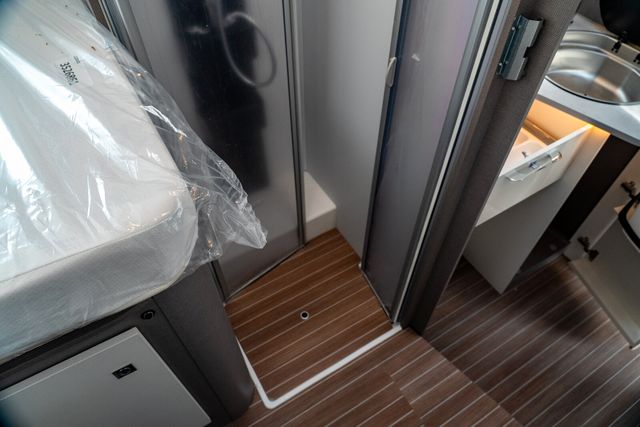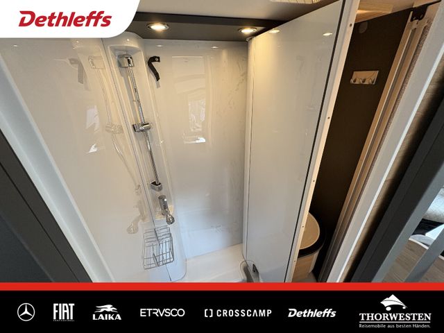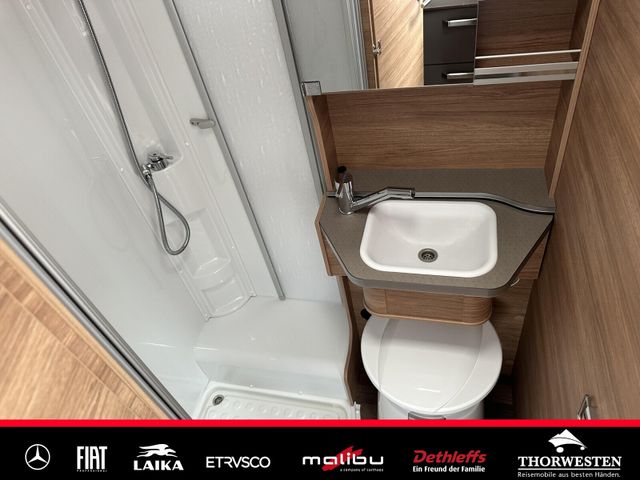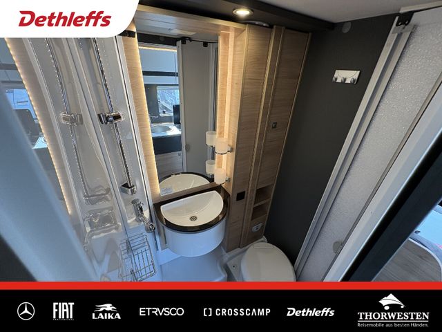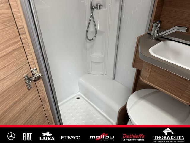 Komfort Paket (Spiegel und Garderobenhaken, Holzlattenrost in der Dusche, Fahrerhaussitze inkl. Wohnraumbezügen, Steckdose im Küchenblock, Steckdose in der Garage)