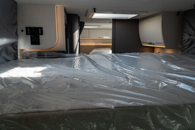 Fahrerhausteppich, Fenster im Bad, Verdunklungsplissee Fahrerhaus (für Front- und Seitenscheiben), Holzeinlage für Duschwanne, Vorbereitung Rückfahrkamera)