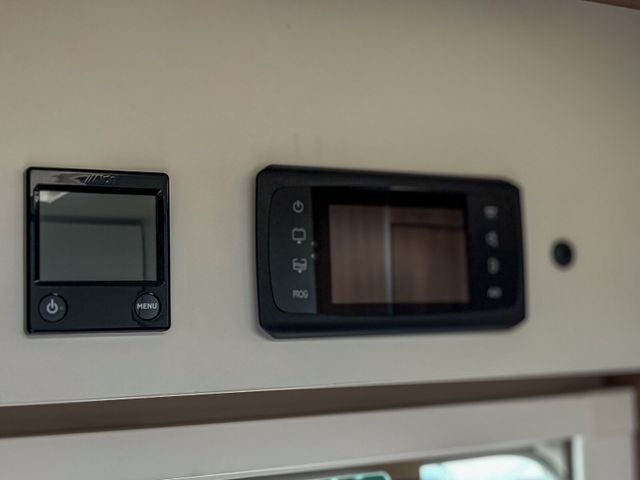 ALDE Warmwasserheizung mit Warmwasserboiler, automatischem Ablassventil, Absperrventil für den Schlafraum und digitalem Bedienelement