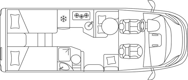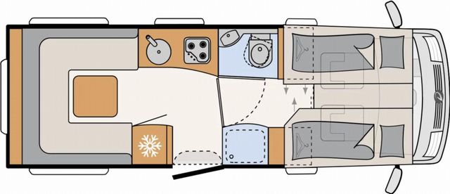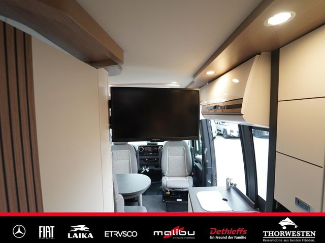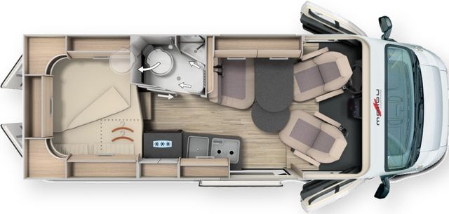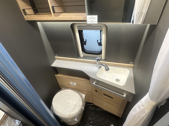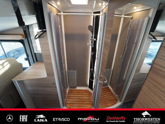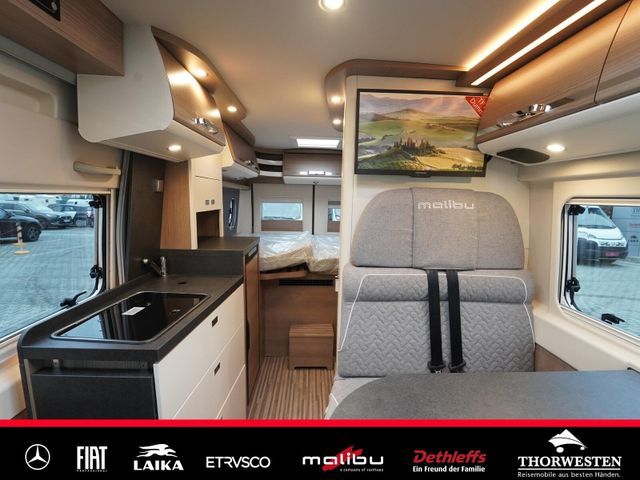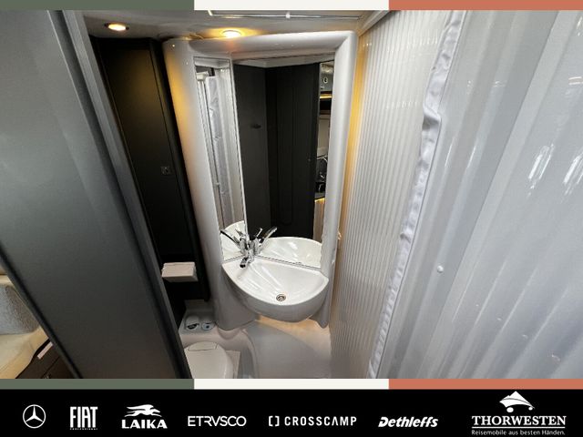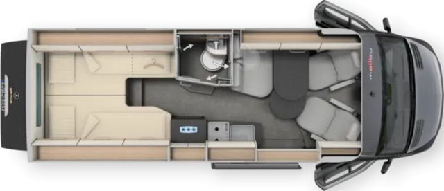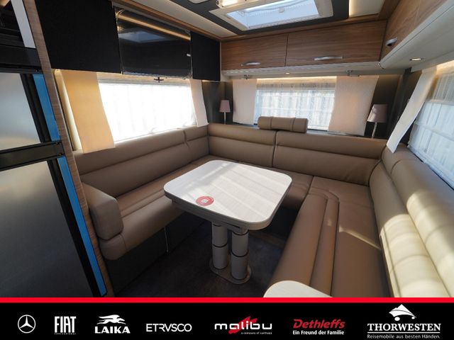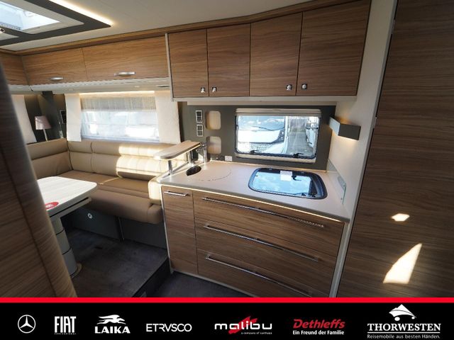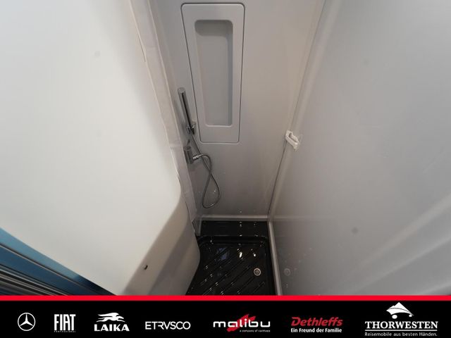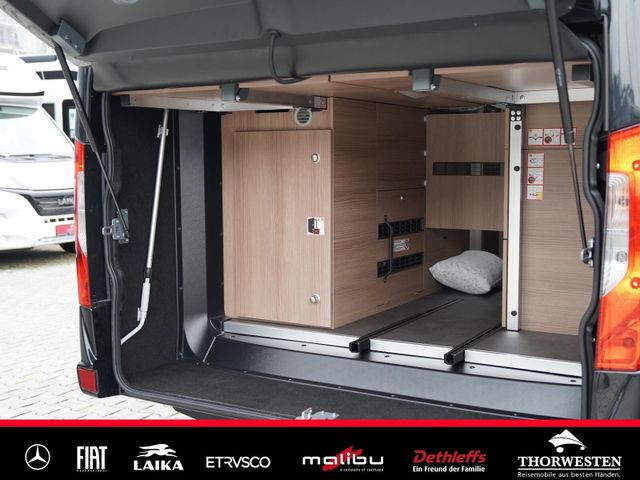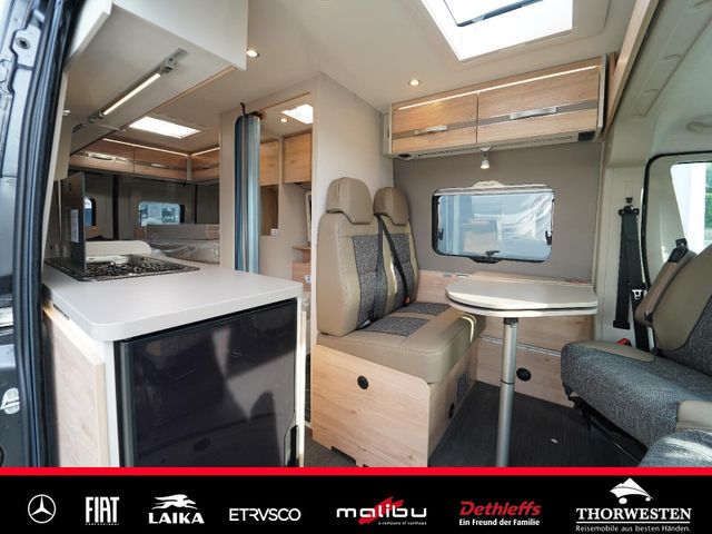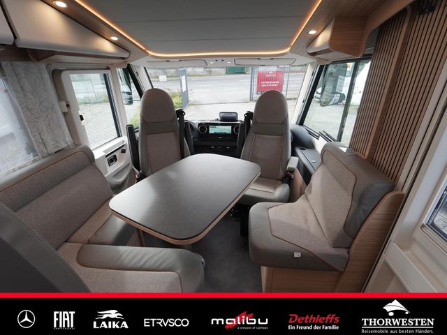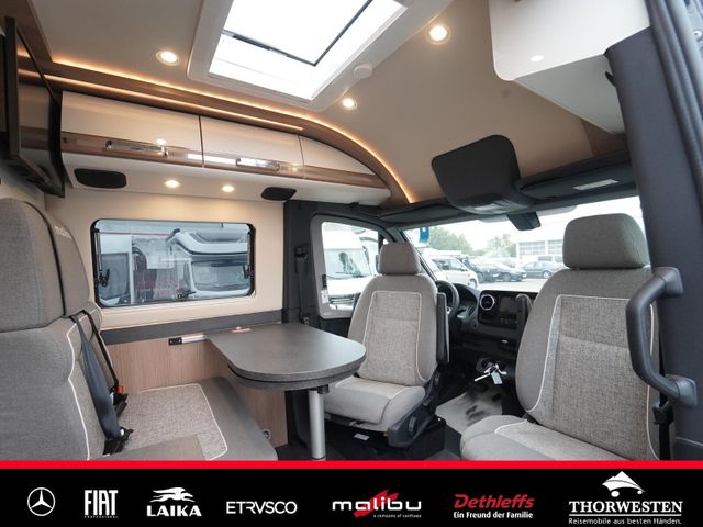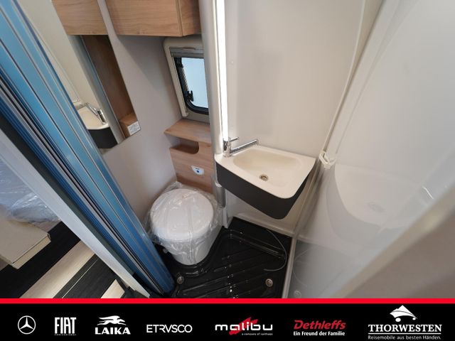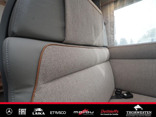 Dachinnenverkleidung mit Mikrofaser-Klimabelag, Upgrade Küchencenter, Qualitäts-Kaltschaummatratze im Heckbett, Truma CP Plus digitales Bedienpanel, Verzurrsystem Gepäckraum, Abwassertank in Gehäuse eingefasst und isoliert)