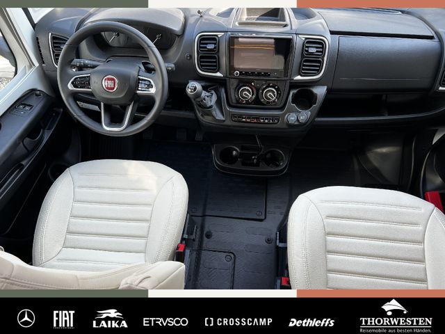 Aktiver Bremsassistent mit Fußgänger und Radfahrererkennung, Aktiver Spurhalteassistent, Fernlichtassistent, Verkehrsschilderkennung, Regen- und Lichtsensor, Abstandsregeltempomat, Intelligenter Geschwindigkeitsassistent, Aufmerksamkeitsassistent, Reifendrucksensoren, Multimediasystem Fiat 10,1" inkl. Navigation, Reisemobil-Routenführung und DAB+, Digitales Rückfahrkamerasystem mit Einzellinse)